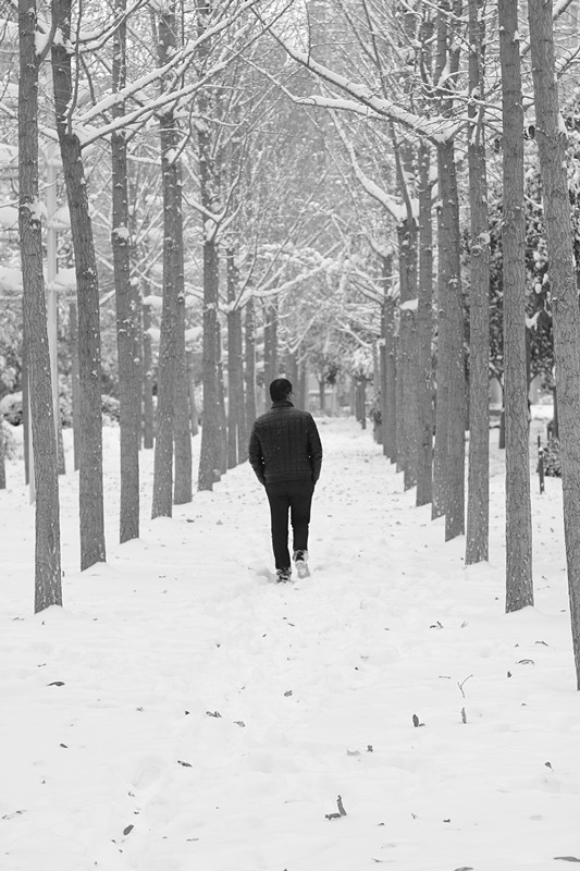 你在茫茫的雪海里踽踽獨(dú)行,時(shí)而抬頭看天,時(shí)而低頭看雪,你在找一個(gè)焦點(diǎn),讓你不至于迷失了方向。