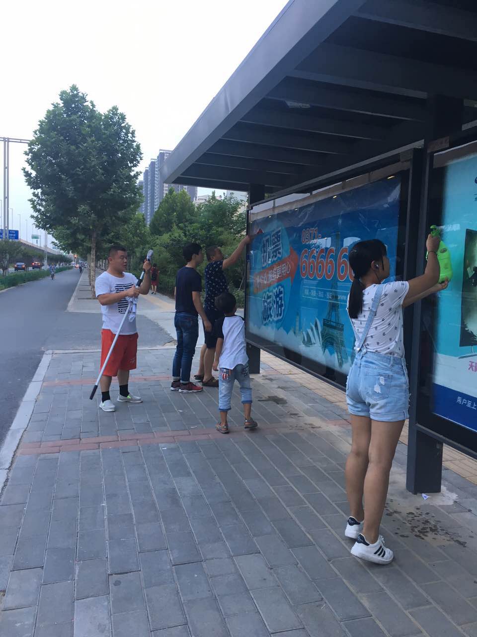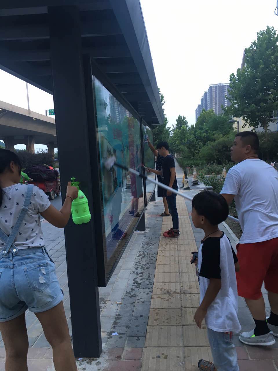 那天,正是二十四節(jié)氣里的“大暑”,聽到這兩個字,浮現(xiàn)在眼前的是什么,不用小編說大家也知道吧?!“炎熱到了極點、一年之中最熱的一天,這就是對大暑最權(quán)威的解釋。而就那一天及接下來的兩天中,公司全體員工在領(lǐng)導的帶領(lǐng)下,拿著戰(zhàn)斗武器,對全市的公交候車亭進行了一次徹底清掃保潔。