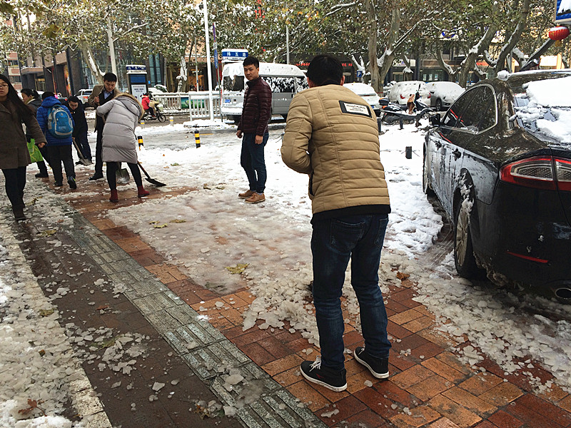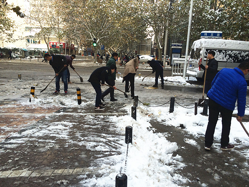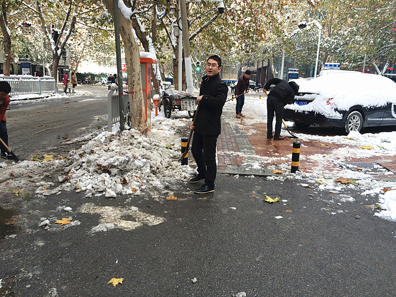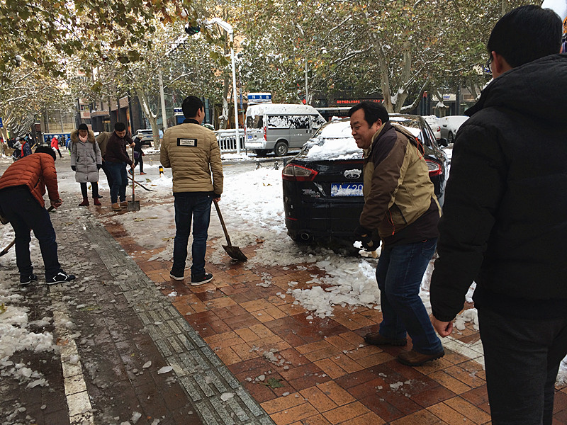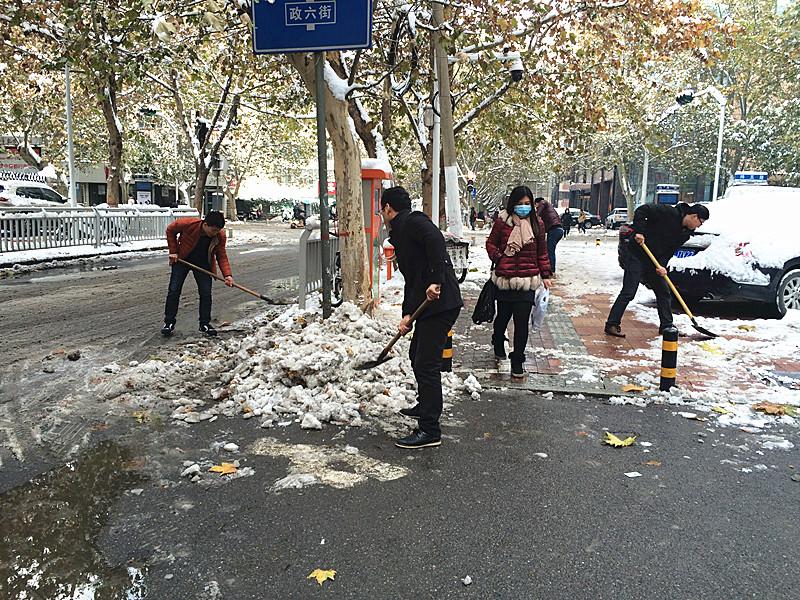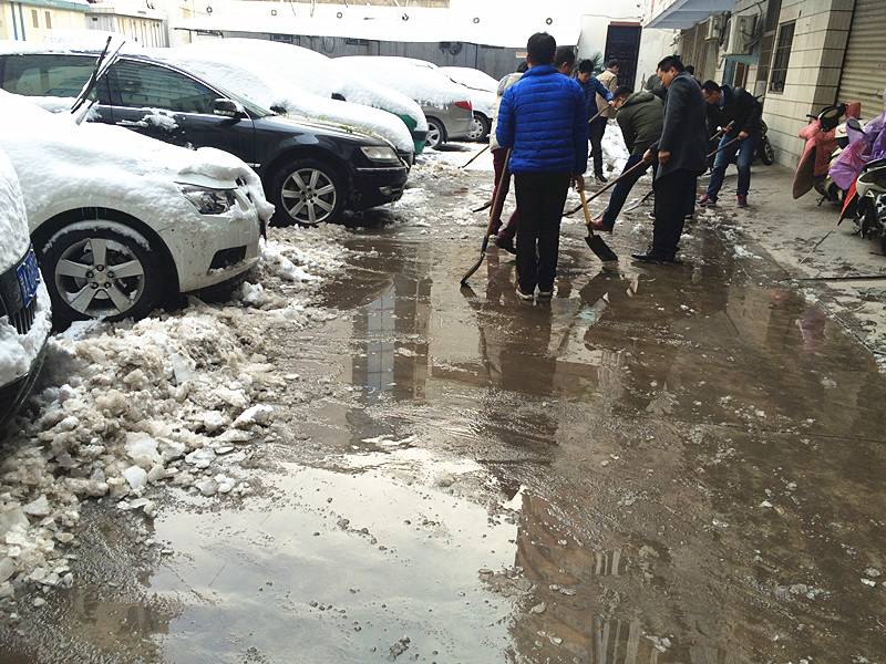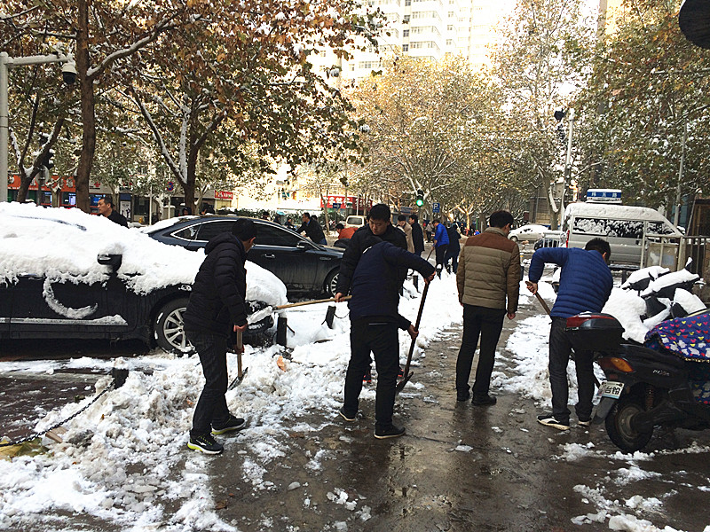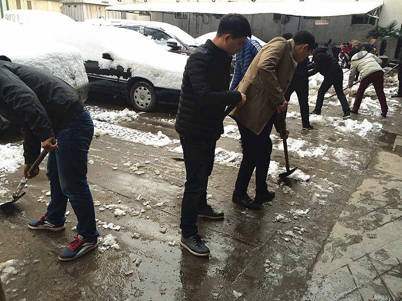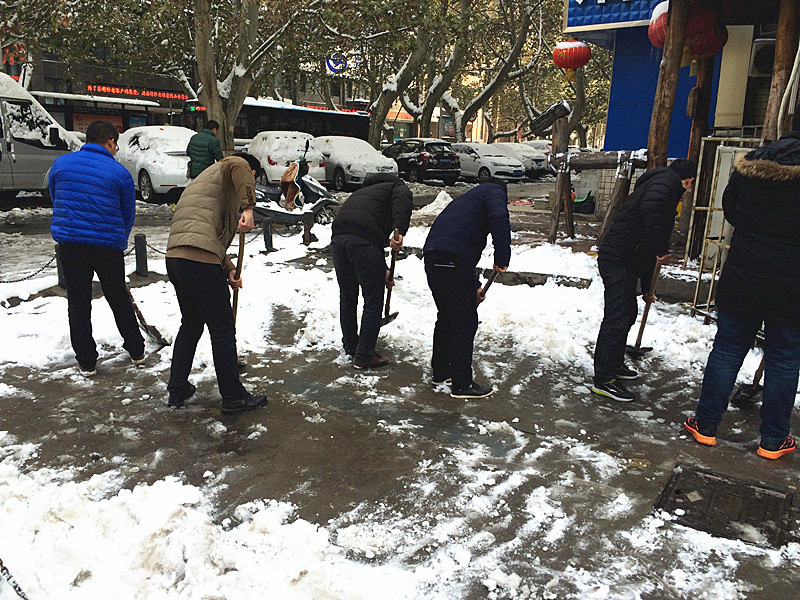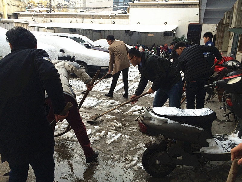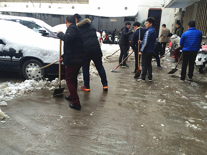 “各人自掃門前雪”此時(shí)發(fā)現(xiàn)這句俗語(yǔ)并不是字面意思了。在溫度只有零下的室外,一群可愛(ài)的人奮力的揮舞著鐵鍬,大家伙有說(shuō)有笑,朝氣,活力,很快清掃出一片干凈的空地,使整個(gè)過(guò)道清爽了不少。